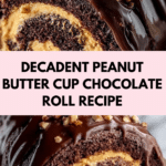 This Irresistible Peanut Butter Cup Chocolate Roll is a delectable dessert featuring a fluffy chocolate sponge cake rolled with a creamy peanut butter filling studded with chopped peanut butter cups. Finished with a luscious chocolate ganache topping, this roll combines rich chocolate and nutty peanut butter flavors for an indulgent treat perfect for any occasion.