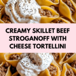 This Irresistibly Creamy Skillet Beef Stroganoff Tortellini Delight combines tender ground beef, savory onions, and garlic with cheesy tortellini simmered in a rich, flavorful beef broth sauce enhanced by Dijon mustard and Worcestershire sauce. Finished with creamy sour cream and fresh parsley, this one-pan dish is a quick and comforting meal perfect for any night of the week.