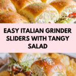 These Italian Grinder Sliders combine layers of ham, pepperoni, salami, and provolone cheese on soft Hawaiian rolls, topped with a savory butter and parmesan spread, then baked to golden perfection. Served with a zesty Italian-style salad tossed in a tangy dressing, these sliders make a perfect appetizer or a flavorful party snack.