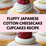 These Japanese Cotton Cheesecake Cupcakes are light, fluffy, and melt-in-your-mouth desserts that combine the creamy taste of cheesecake with the airy texture of a sponge cake. Perfectly baked to achieve a delicate cotton-like softness, these cupcakes are subtly sweet with a hint of lemon, making them an irresistible treat for any occasion.