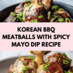 Korean BBQ Meatballs with Spicy Mayo Dip offer a flavorful twist on a classic favorite. These tender meatballs are glazed with a sweet and spicy Korean BBQ sauce and paired with a creamy, tangy dip that adds an extra kick. Perfect as a party appetizer or a satisfying snack.