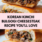 This Korean-inspired Kimchi Bulgogi Cheesesteak brings together the bold flavors of marinated beef and tangy kimchi with the comforting melt of cheese on a toasted hoagie roll. It’s a vibrant twist on a classic sandwich that’s both satisfying and full of umami.