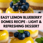 Lemon Blueberry Domes are a delightful, elegant dessert combining tangy lemon mousse with sweet blueberry jelly atop a light sponge base. Perfect for special occasions, these domes offer a refreshing burst of flavor in every bite.