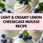 This Lemon Cheesecake Mousse is a light and airy dessert combining creamy whipped cream, tangy lemon curd, and smooth cream cheese. Perfect for a refreshing treat, it requires no baking and can be served chilled, garnished with fresh berries for an elegant finish.