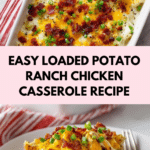 This Loaded Potato Ranch Chicken Casserole is a comforting, flavorful dish perfect for a hearty family dinner. It combines tender chicken, seasoned potatoes, crispy bacon, and melted cheese all baked together with a zesty ranch twist.