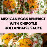 Mexican Eggs Benedict is a vibrant twist on the classic brunch favorite, featuring roasted sweet potato rounds as the base, topped with savory Mexican-style chorizo, creamy avocado slices, and perfectly poached eggs. Finished with a smoky, spicy chipotle hollandaise sauce and garnished with fresh cilantro and lime wedges, this recipe delivers bold flavors and a satisfying meal that’s perfect for brunch or a special breakfast.