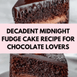 Midnight Fudge Cake is a rich, moist chocolate cake perfect for any celebration or a decadent treat. With its deep chocolate flavor and creamy fudge frosting, this cake promises a delightful experience for chocolate lovers.