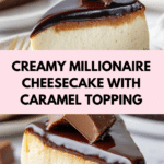 This Millionaire Cheesecake is a rich and creamy dessert featuring a buttery graham cracker crust, smooth cream cheese filling, and topped with luscious caramel sauce. Perfect for special occasions or indulgent treats, this baked cheesecake offers a perfect balance of sweetness and texture.