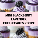 These Mini Blackberry Lavender Cheesecakes are a delicate and charming dessert, perfect for spring and summer gatherings. Each bite combines a smooth, floral-scented cheesecake with a sweet-tart blackberry topping on a crisp graham cracker crust.