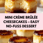 Mini Crème Brûlée Cheesecakes combine the creamy richness of classic cheesecake with the caramelized sugar topping of crème brûlée. These individual desserts are perfect for impressing guests or treating yourself to a decadent bite-sized delight.