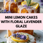 Keywords: mini lemon cakes, lavender glaze, lemon desserts, floral glaze, baked mini cakes, lemon zest cake, edible flowers dessert