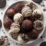 Store Oreo Balls in an airtight container in the refrigerator for up to one week. For longer storage, freeze them for up to three months and thaw in the fridge before serving. Reheat is not recommended as it can affect texture and coating.