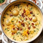 8. Serve and Garnish: Ladle the soup into bowls and garnish with a generous sprinkle of cheddar or Colby-Monterey Jack cheese, crispy crumbled bacon bits, and finely chopped green onions for added flavor and visual appeal.