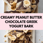 Delight in this easy-to-make Peanut Butter Chocolate Greek Yogurt Bark, a creamy, protein-rich frozen treat swirled with melted chocolate and customizable toppings like banana slices, graham cracker crumbs, and nuts. Perfect for a healthy snack or dessert that’s both indulgent and nutritious.