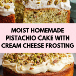 Keywords: Pistachio cake, nut cake, cream cheese frosting, homemade cake, toasted pistachios, easy cake recipe