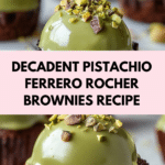 Indulge in these decadent Pistachio Ferrero Rocher Brownies, a luscious blend of rich chocolate, creamy pistachio, and crunchy chopped pistachios. Perfectly baked with a fudgy texture and coated in smooth pistachio cream, these brownies bring a delightful twist to a classic dessert, ideal for chocolate lovers craving a nutty finish.
