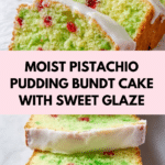 This Pistachio Pudding Bundt Cake is a moist and flavorful dessert combining the nutty taste of pistachio pudding with a classic yellow cake mix. Enhanced with sour cream and almond extract, it bakes to a tender crumb and is finished with a sweet powdered sugar glaze infused with maraschino cherry juice for a delicate fruity touch.
