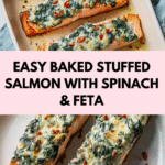 Keywords: baked salmon, stuffed salmon, spinach feta filling, healthy salmon recipe, Mediterranean salmon, oven baked salmon