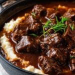 Store leftover shredded beef and gravy in an airtight container in the refrigerator for up to 3 days. Keep mashed potatoes separate for best texture. Reheat gently on the stove or microwave until warmed through, adding a little broth or water if needed to loosen the gravy.