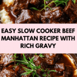 Slow Cooker Beef Manhattan is a comforting, hearty dish perfect for a cozy dinner. Tender shredded beef is served over mashed potatoes and bread, all smothered in rich gravy. It’s a classic, satisfying meal that’s easy to prepare and sure to please the whole family.
