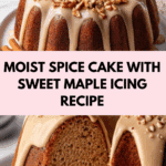 This delicious Spice Cake with Maple Icing combines warm autumnal spices and a moist, tender crumb with a rich, sweet maple-flavored icing. Perfect for fall gatherings or any cozy occasion, the cake is baked in a bundt pan for an elegant presentation and finished with optional toasted pecans for added texture and flavor.
