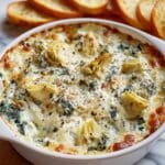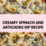 Spinach and artichoke dip is a creamy, cheesy appetizer that’s perfect for parties or cozy nights in. This easy-to-make dip combines fresh spinach, tender artichokes, and a blend of cheeses for a deliciously satisfying treat.
