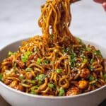 This Sticky Garlic Chicken Noodles recipe combines tender, crispy-coated chicken pieces in a glossy, sweet and savory garlic sauce tossed with perfectly cooked noodles. Enhanced with the warmth of ginger, a hint of chili heat, and garnished with green onions and sesame seeds, this dish is a quick and flavorful meal perfect for weeknight dinners.