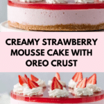 Keywords: Strawberry mousse cake, no-bake strawberry cake, Golden Oreo crust dessert, creamy mousse dessert, easy summer cake
