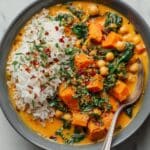 This Sweet Potato and Chickpea Curry is a comforting, flavorful dish that’s perfect for any night of the week. Combining tender sweet potatoes and protein-packed chickpeas in a fragrant, creamy coconut sauce makes for a hearty and satisfying meal.