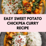 This Sweet Potato and Chickpea Curry is a hearty and flavorful vegetarian dish featuring tender sweet potatoes and protein-rich chickpeas simmered in a fragrant coconut curry sauce. Perfect for a comforting weeknight dinner, it blends aromatic spices like curry powder, turmeric, and cumin with creamy coconut milk for a delicious and nutritious meal.