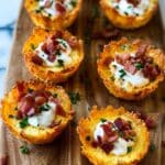 - Step 7: Top the potato cups with sour cream, crumbled bacon, and sliced green onions. Serve warm and enjoy.