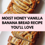 This honey vanilla banana bread is moist, flavorful, and naturally sweetened with honey. Perfect for breakfast or a snack, it combines ripe bananas with warm vanilla and a hint of honey for a delicious homemade treat.