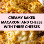 Keywords: macaroni and cheese, baked mac and cheese, creamy pasta, comfort food, three-cheese pasta, Tini’s recipe