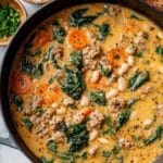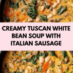 Keywords: Tuscan white bean soup, Italian sausage soup, creamy white bean soup, spinach soup, comforting soup recipes