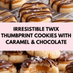 These Twix Thumbprint Cookies combine buttery shortbread, gooey caramel, and a drizzle of smooth milk chocolate for a delightful treat reminiscent of the classic candy bar. Perfect for satisfying sweet cravings, they’re easy to make and sure to impress friends and family.