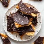 - Step 5: After freezing, melt the chocolate chips in a microwave-safe dish by heating in 30-second intervals, stirring between each until smooth. Remove the bark from the freezer, then pour and spread the melted chocolate evenly over the peanut butter layer. Sprinkle with flaky sea salt or other toppings if desired.