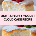 The Yogurt Cloud Cake is a light and airy dessert that combines the tangy richness of yogurt with a delicate lemon flavor. Its soft texture and subtle sweetness make it a perfect treat for any occasion, whether as a simple snack or an elegant dessert.